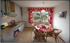 Wenn´s mal schmecken soll wie zu Hause: Kein Problem, die Komplett-Küche mit Mikrowelle, Backofen und Spül-Maschine sowie Essecke für sechs Personen macht´s möglich. Der Brötchenservice wird Sie freuen. |
